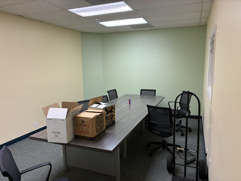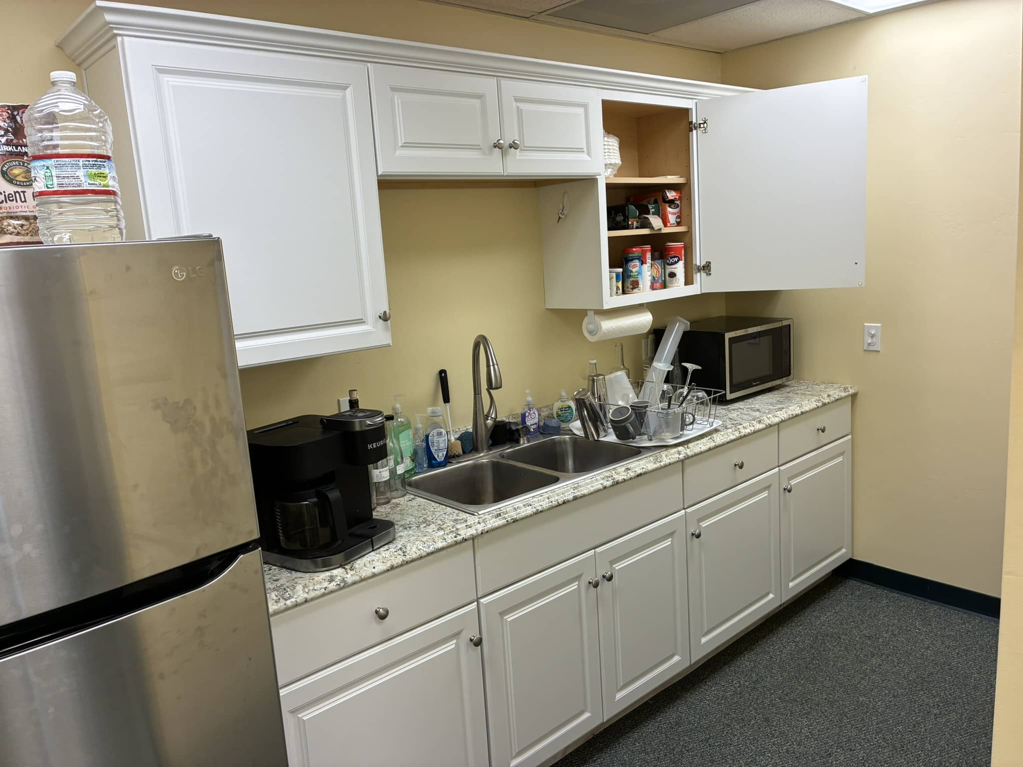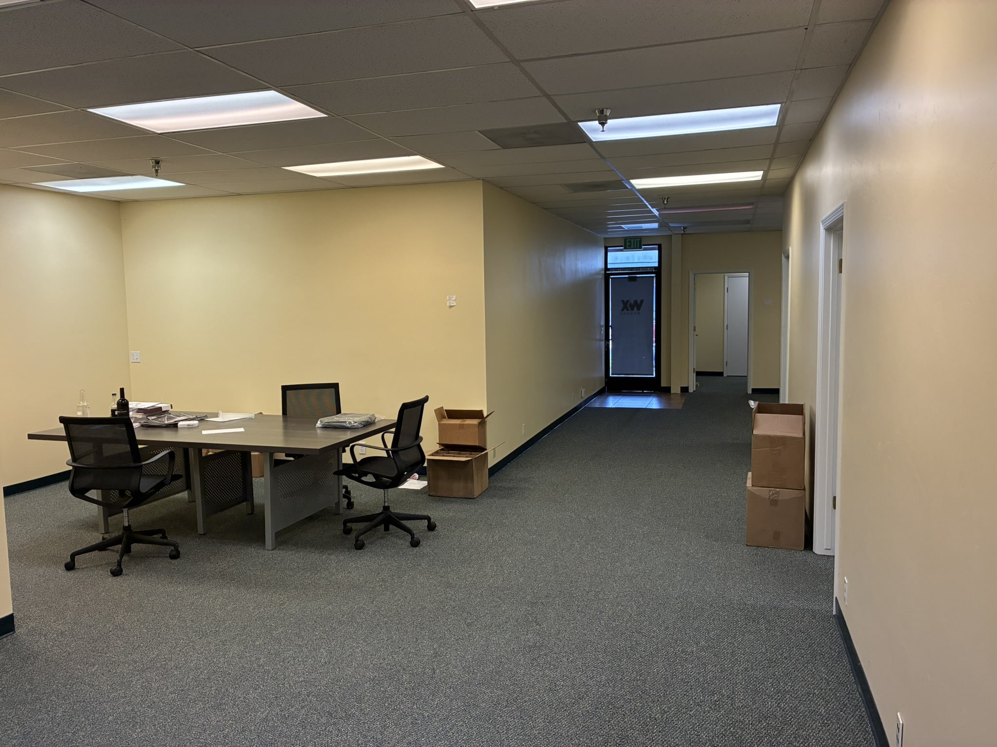 Notes: Three private offices, a large conference room, a break area, an open work area, and two restrooms.